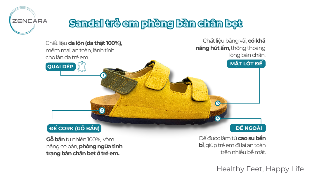 Dép sức khỏe đế cork Zencara ngăn ngừa bàn chân bẹt