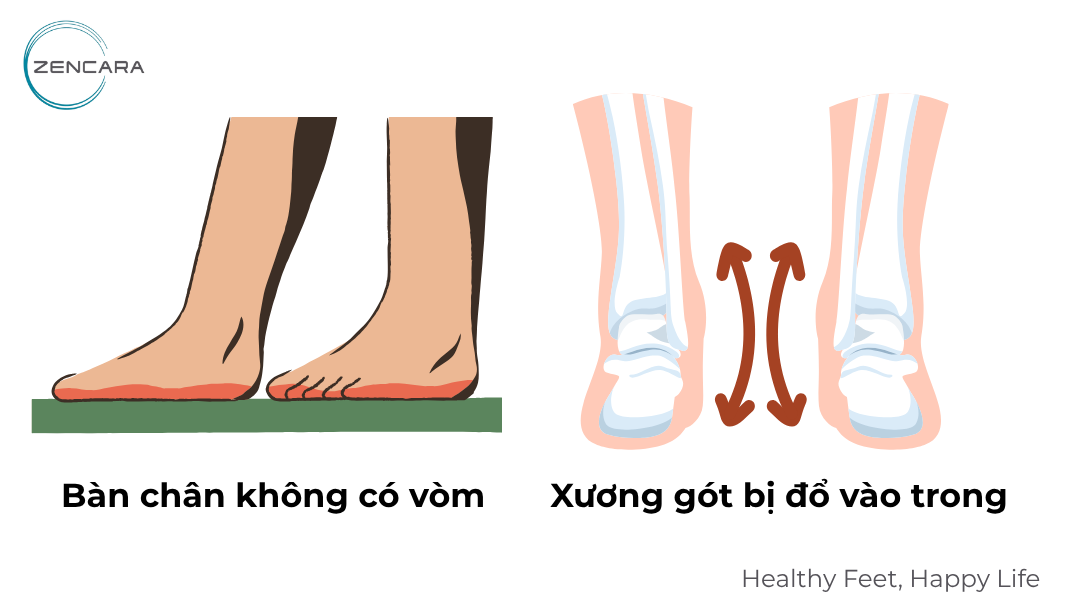 - Mất giảm sốc: Không có vòm, lực tác động từ mặt đất truyền thẳng lên các khớp lớn, khiến bước đi nặng nề và thiếu linh hoạt.