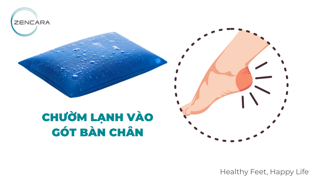 Giảm thiểu các hoạt động gây áp lực lên gót chân. Chườm lạnh bằng túi đá hoặc chai nước đá lăn dưới gót chân (15-20 phút, 3-4 lần/ngày) là biện pháp tức thì để giảm viêm và giảm đau.